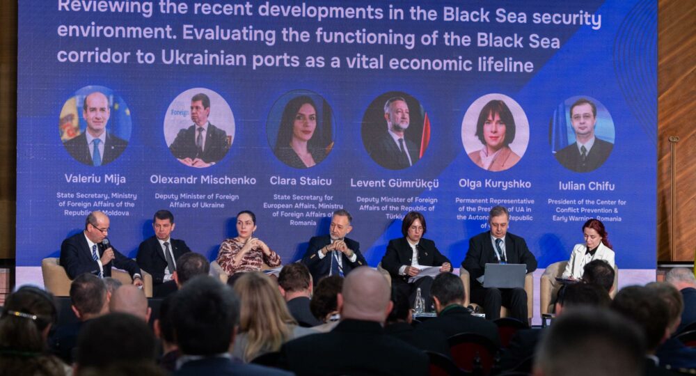У рамках конференції відбулася панельна дискусія на тему «Оцінка останніх подій у сфері безпеки Чорного моря. Дослідження функціонування Чорноморського коридору до українських портів як життєво важливої ​​економічної артерії» за участю заступника Міністра закордонних справ Турецької Республіки пана Левента Гюмрукчю, заступника Міністра закордонних справ України пана Олександра Міщенка, Представника Президента України в Автономній Республіці Крим пані Ольги Куришко та інших високопосадовців. Ми дякуємо Турецькій Республіці за активну участь у Конференції з безпеки Чорного моря та її рішучий підхід до взяття на себе провідної ролі у сфері безпеки Чорного моря.