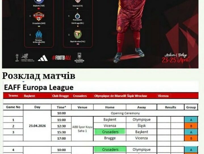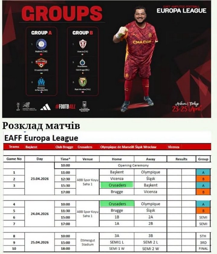 В Анкарі проходить міжнародний турнір EAFF Europa League 2026, організований European Amputee Football Federation (Європейська федерація ампфутболу), де бере участь українська команда “Хрестоносці”.