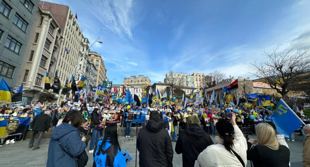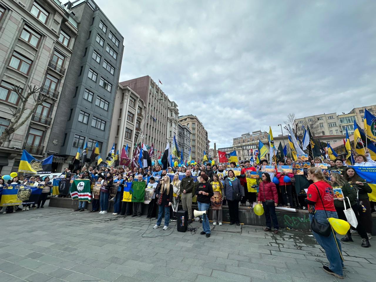 21.02.2026 у Стамбулі відбувся мітинг, який відкрив низку заходів, організованих до 4-ї річниці повномасштабного вторгнення Росії на територію України.