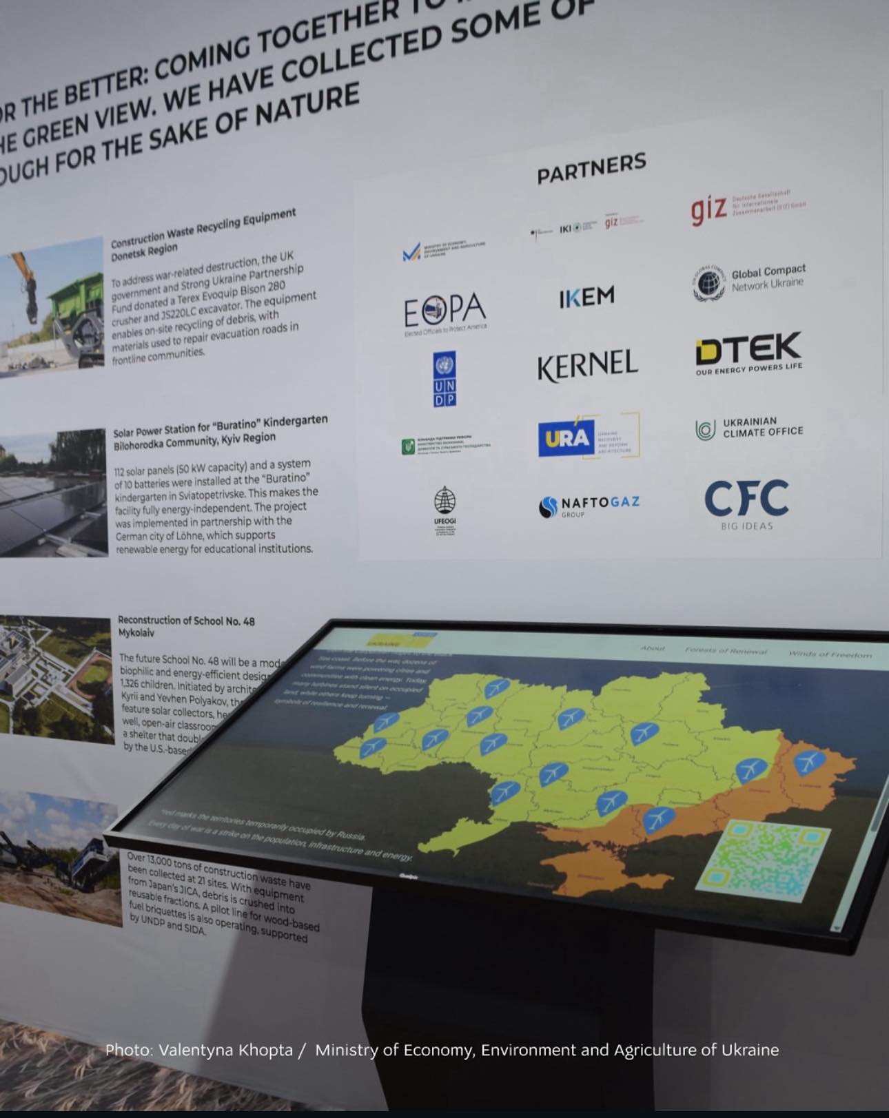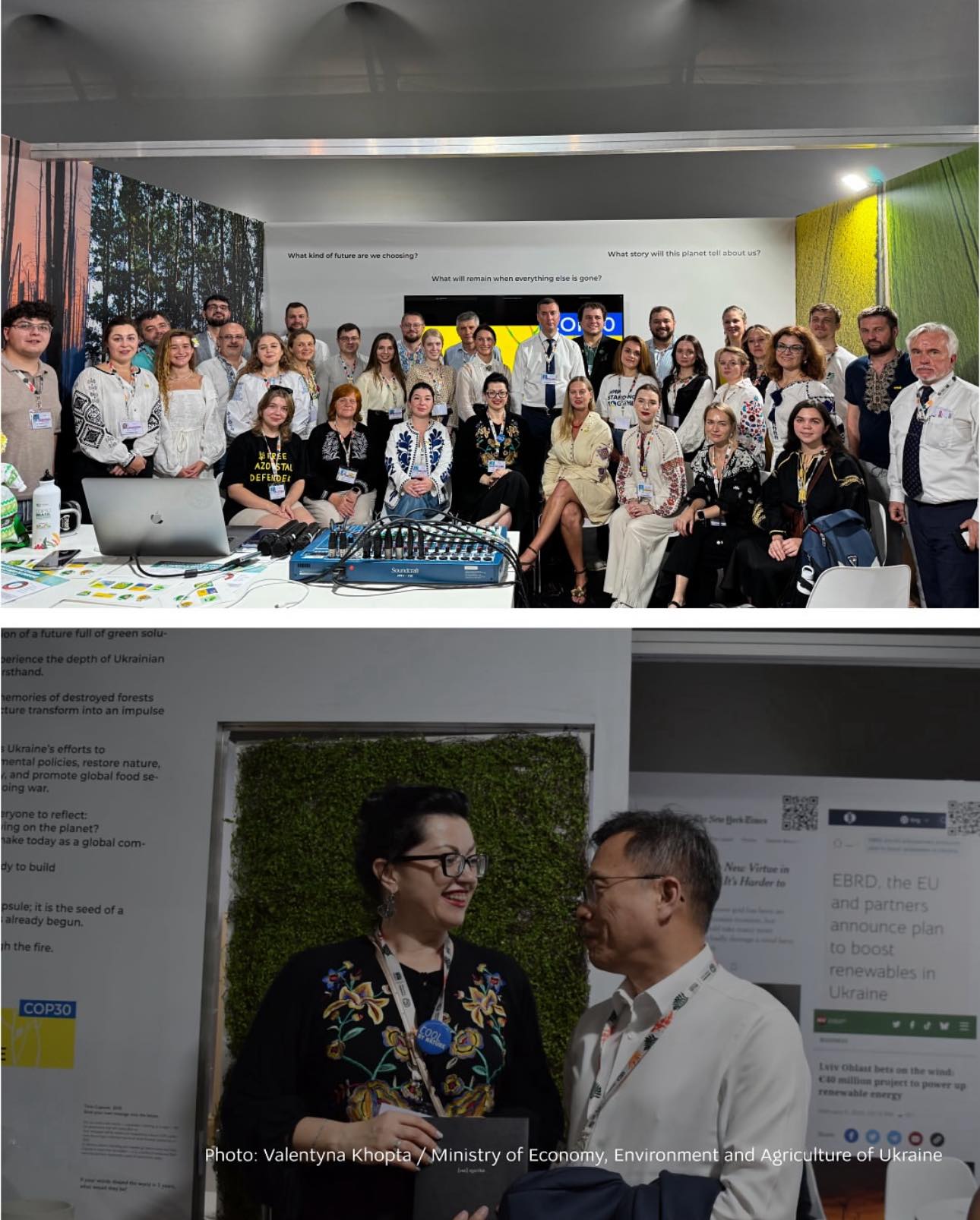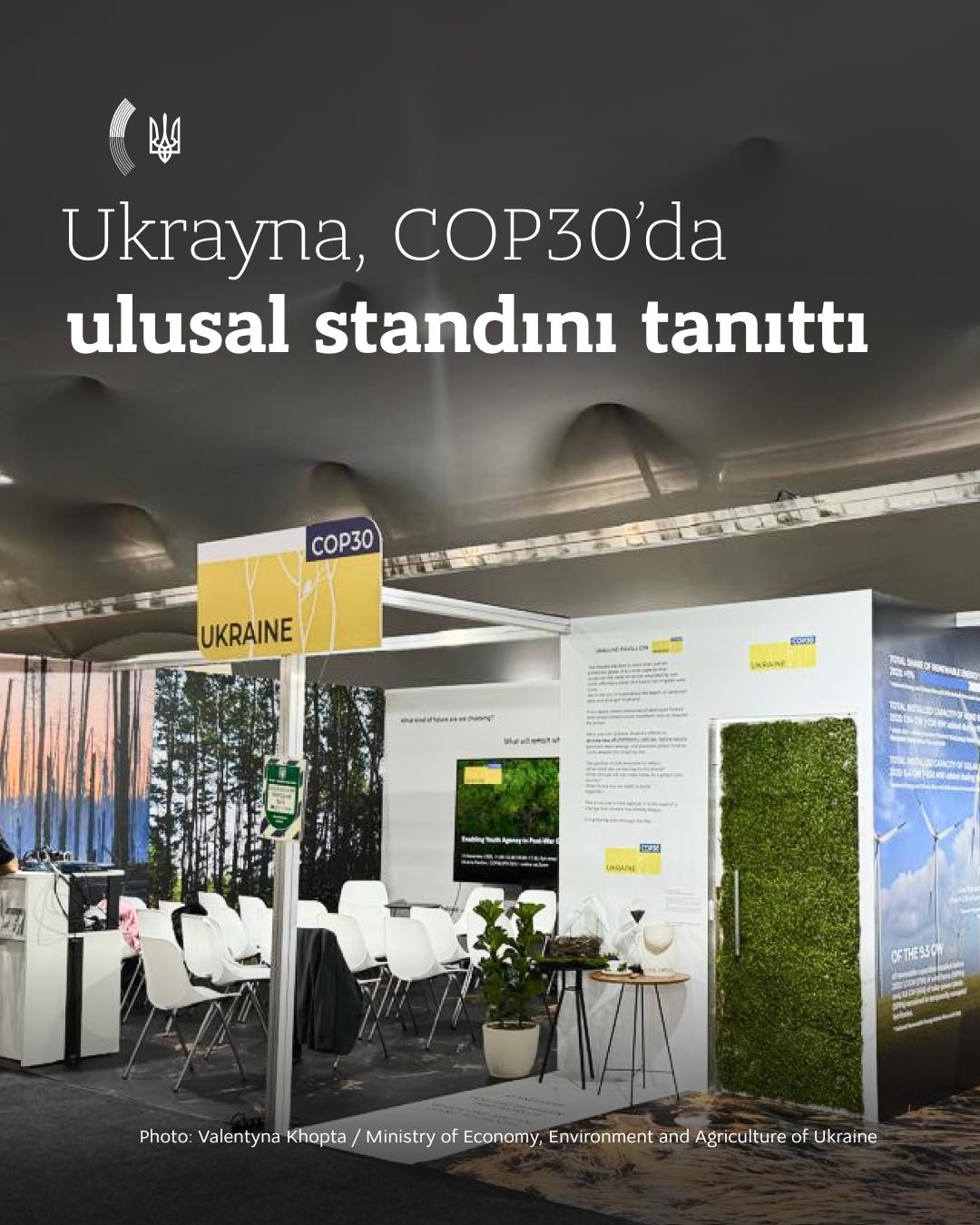 Цього року Україна представляє свій національний стенд на конференції вчетверте. Стенд України під назвою «Капсула часу» розповідає історію країни, пораненої війною, але живої оновленням. Спогади про спалені ліси та зруйновану інфраструктуру стають закликом до дії. Уряд, бізнес та громадянське суспільство зберуться разом, щоб поділитися тим, як Україна відбудовується не лише сильнішою, а й екологічнішою. Стенд висвітлює питання, що мають критичне значення для України та світу: