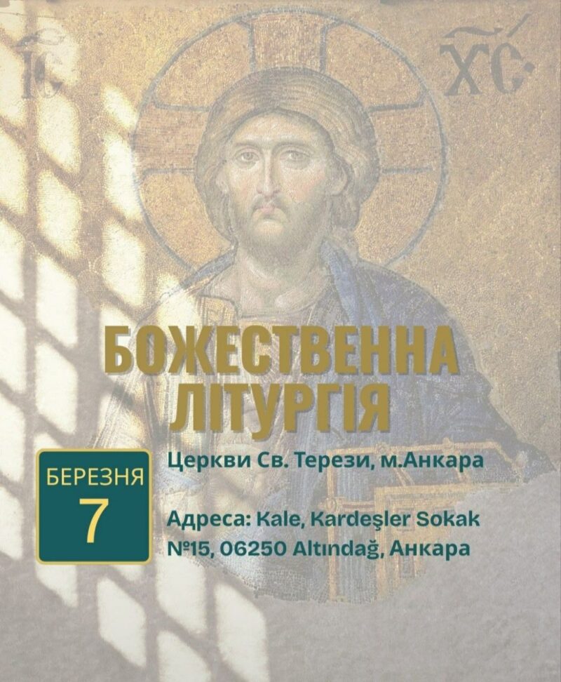 Радісно сповіщаємо, що наступна Божественна Літургія, яку звершить  високоповажний Митрополит Григорій, відбудеться у суботу 7 березня в приміщенні церкви Св. Терези, м.Анкара.
